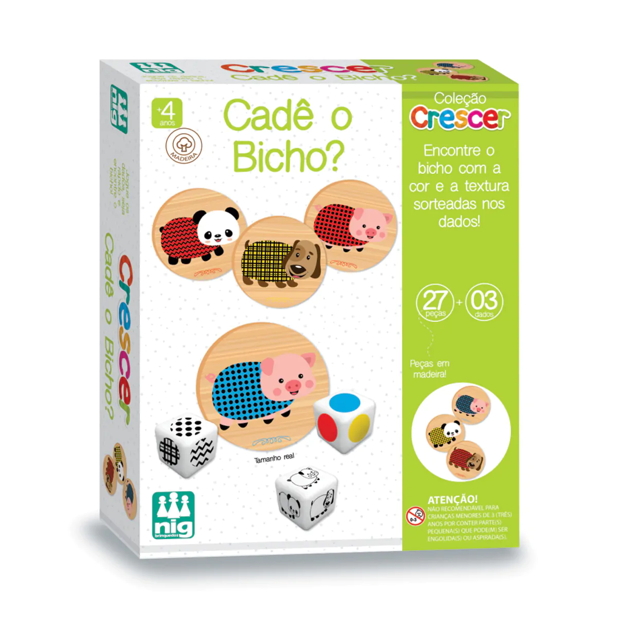 O objetivo é encontrar o bicho com a cor e a textura sorteadas nos dados.